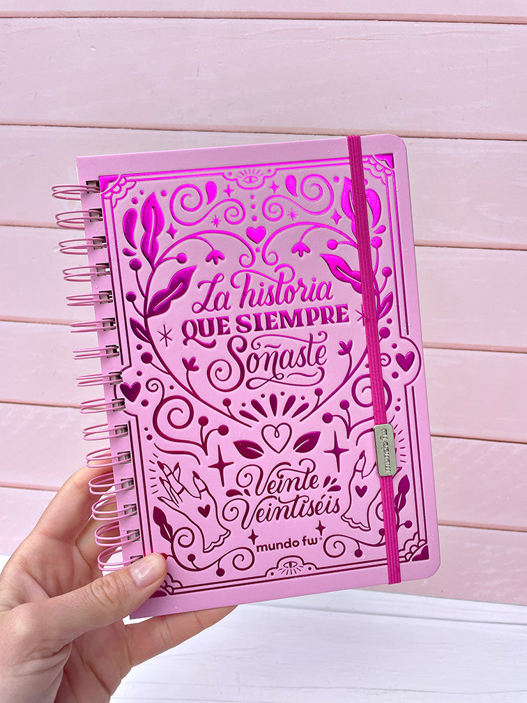 - Tapa dura con elástico.