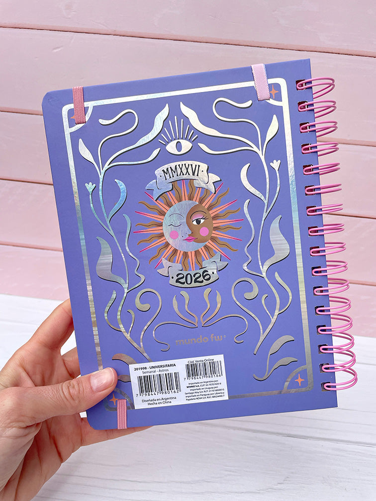 - Agenda de vista Semanal 2026, con horario de 7 a 22 hs.