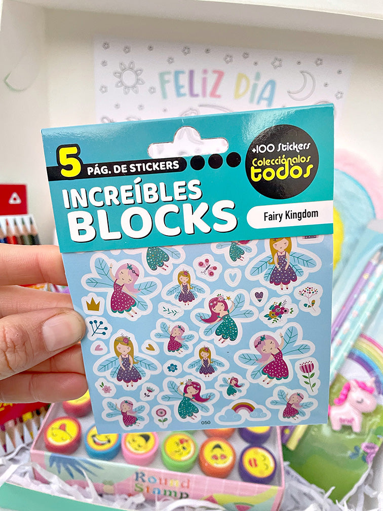- Block de 5 planchitas de stickers con diseños de hada.