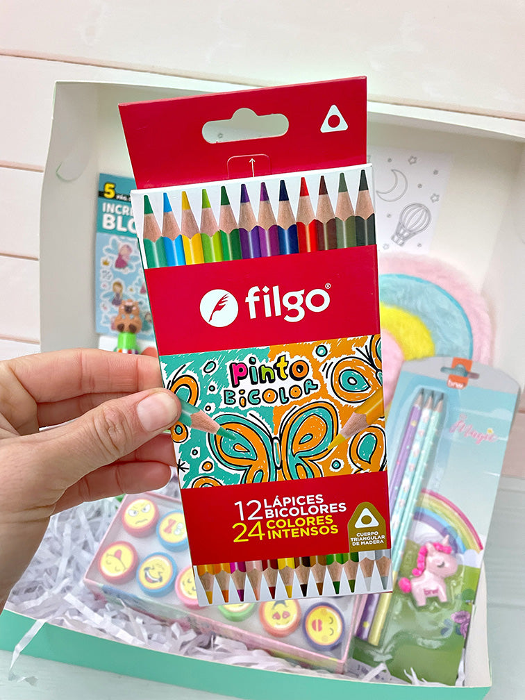 - Cajita con 12 colores Filgo doble punta (24 en total).
