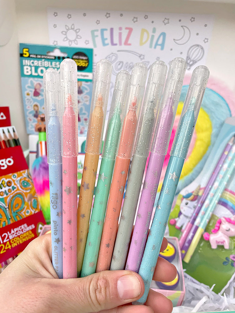 - Cajita con 8 Marcadores glitter pastel Filgo.