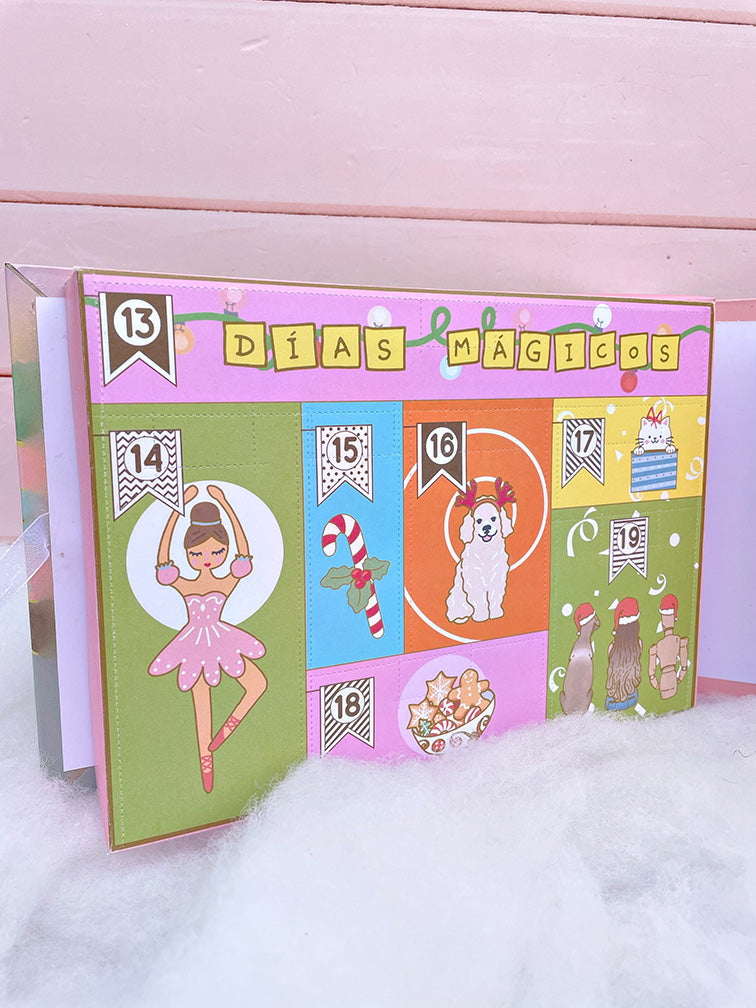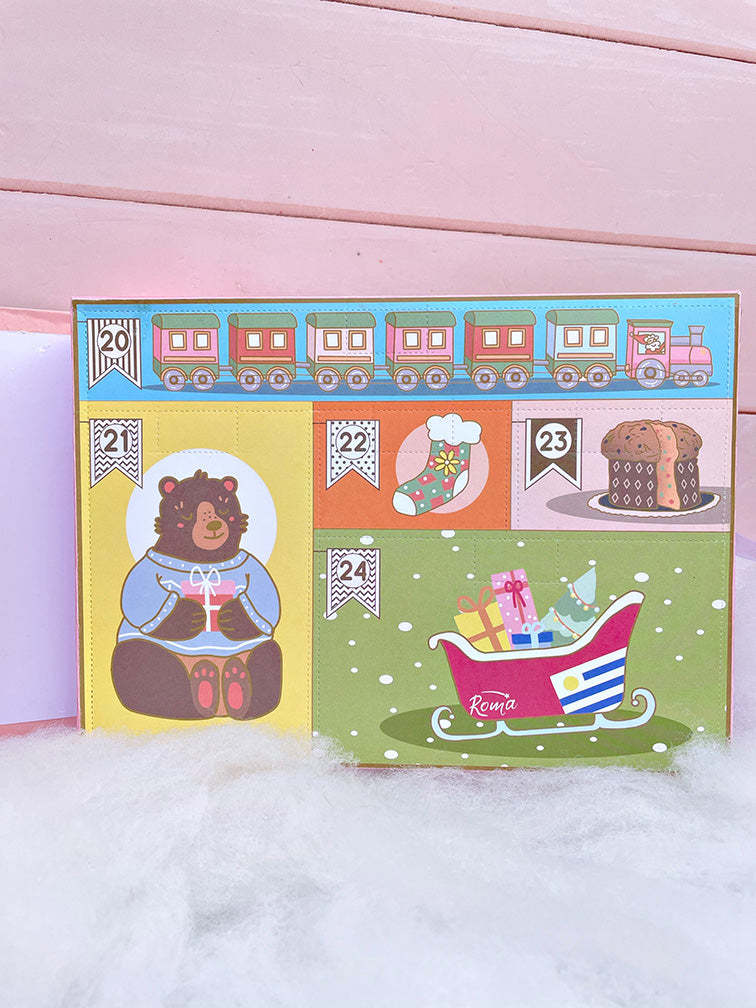 Sus puertitas troqueladas te permiten cortar y abrir tu regalito sorpresa. En algunos días también hay tarjetitas con frases que te acompañarán en esta aventura.