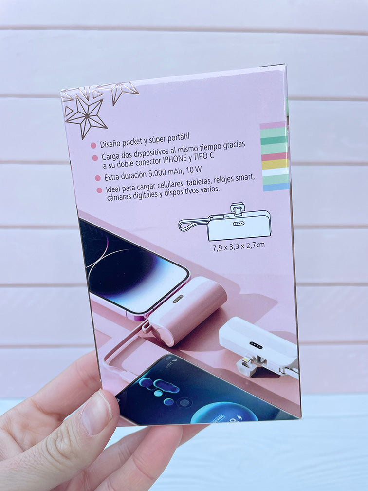 - Carga 2 dispositivos al mismo tiempo gracias a su doble conector: Iphone Y Tipo C.