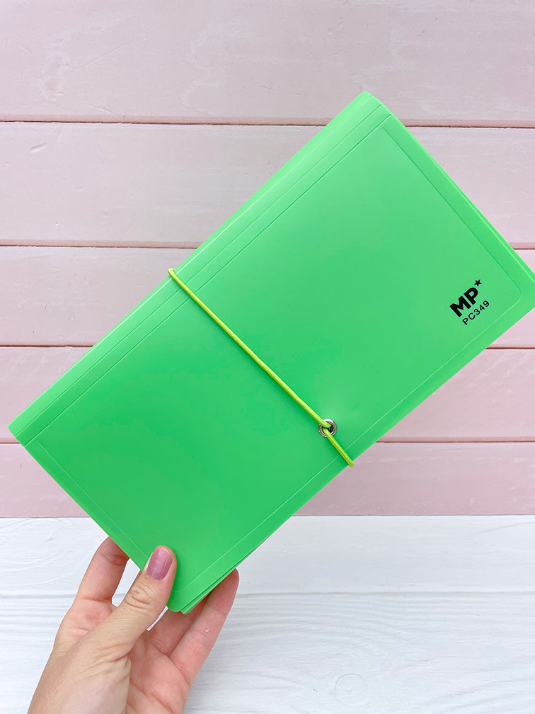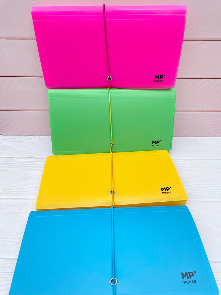 - Carpeta plástica con elástico y 12 divisiones.