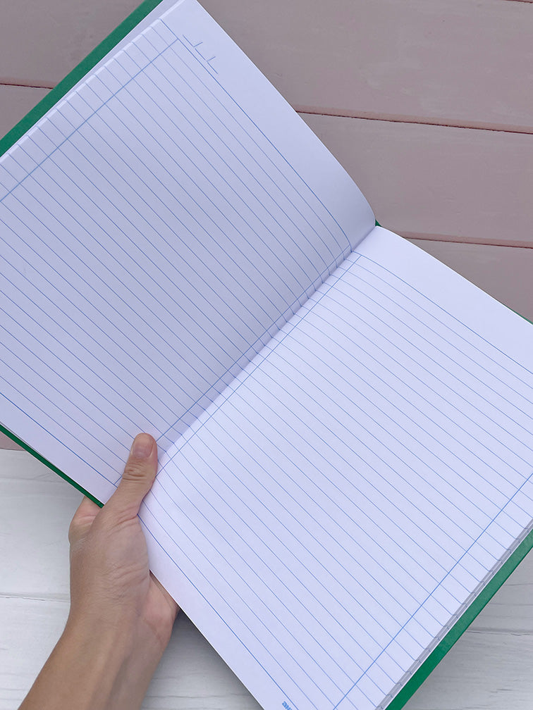- Cuadernola Cosida Tapa dura, 96 hojas, color verde.
