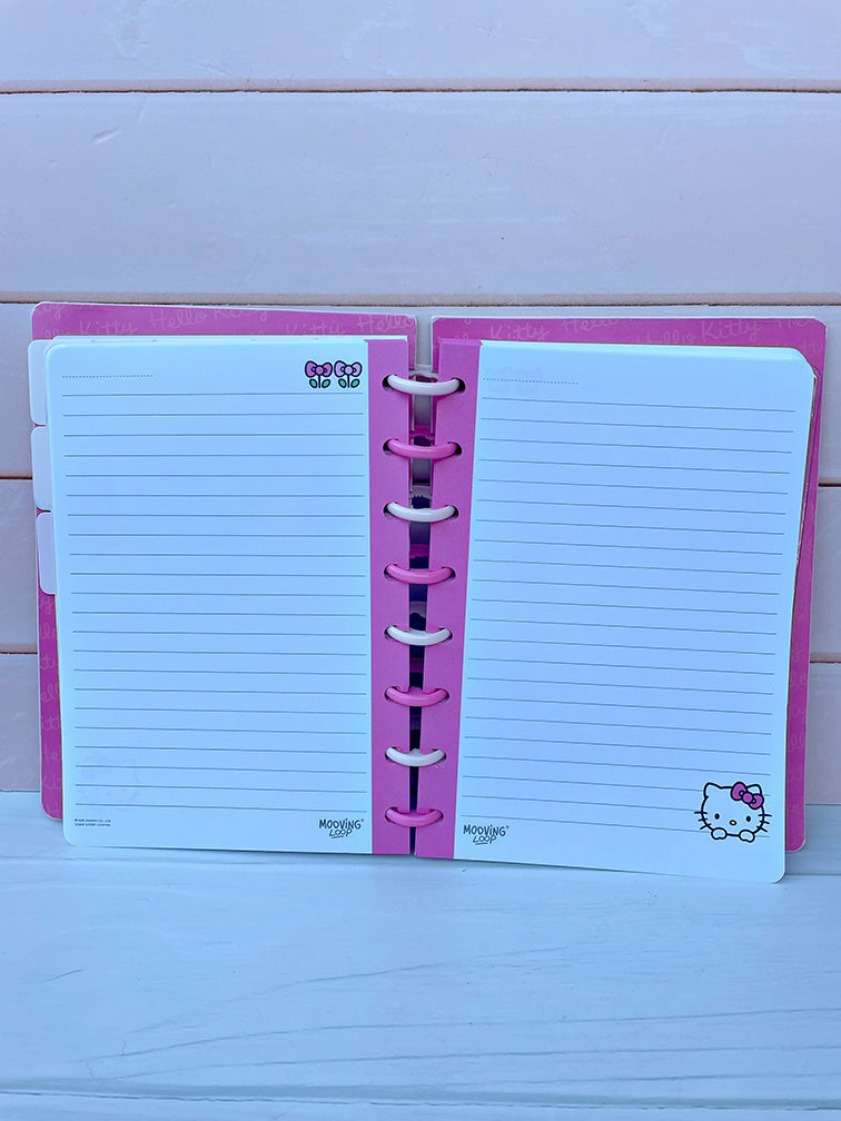 - Cuadernito A5 Tapa Dura con sistema de discos, diseño de Kitty.