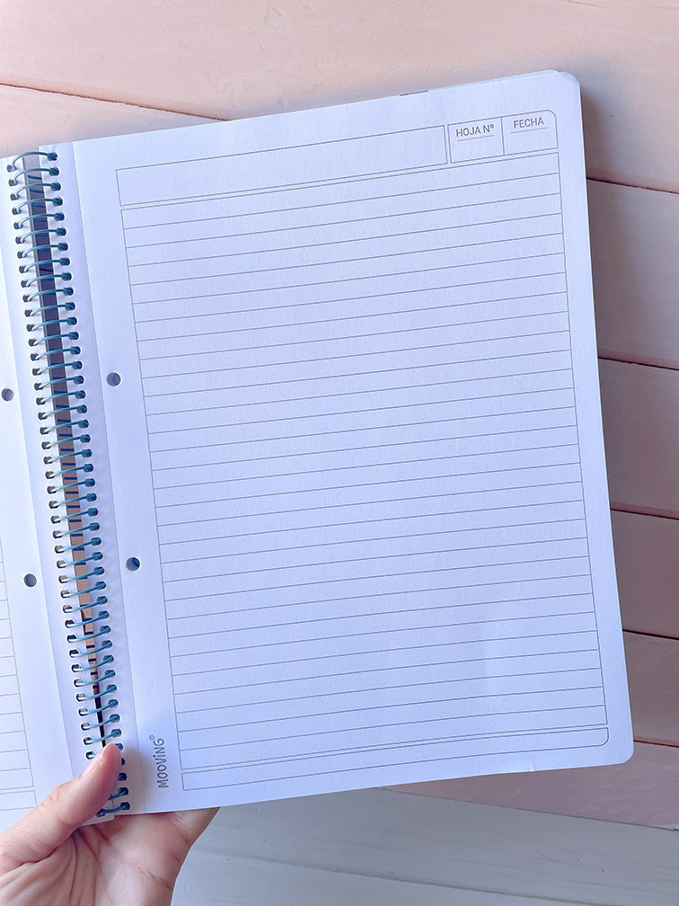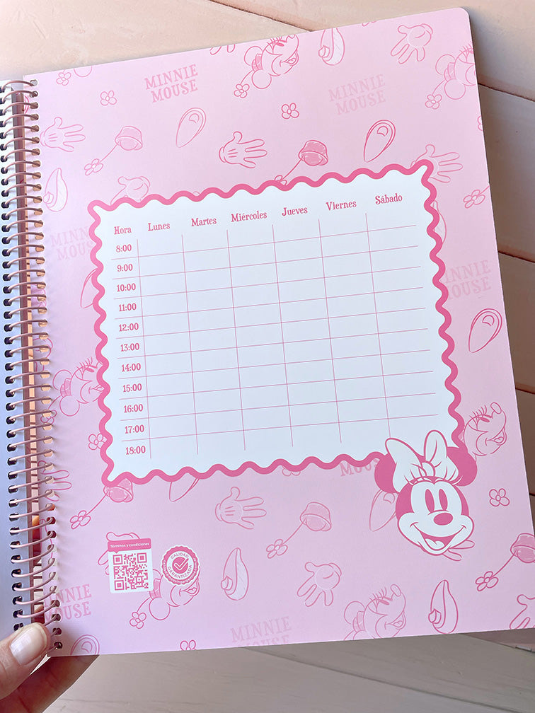Cuadernola Mooving con diseños de Minnie en formato A4, perfecto para el día a día académico o laboral con un diseño clásico y encantador. Su acabado premium y materiales resistentes aseguran durabilidad y una escritura cómoda en cada uso.