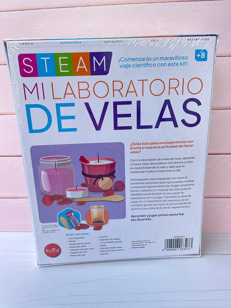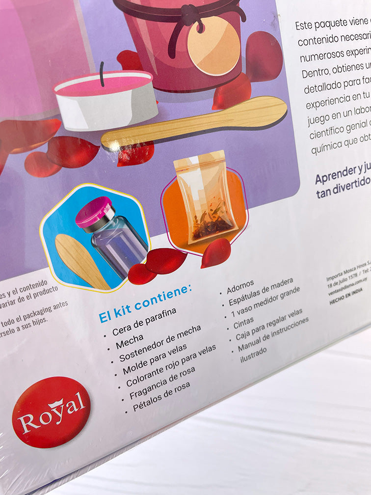 - Kit de ciencia para aprender a hacer velas de colores con aroma a rosas.