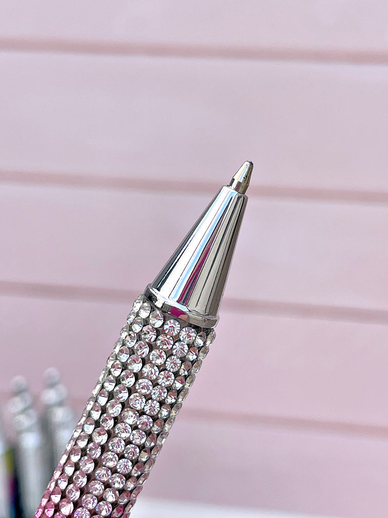- Lapicera tinta azul retráctil, con cuerpo cubierto por piedritas brillosas.