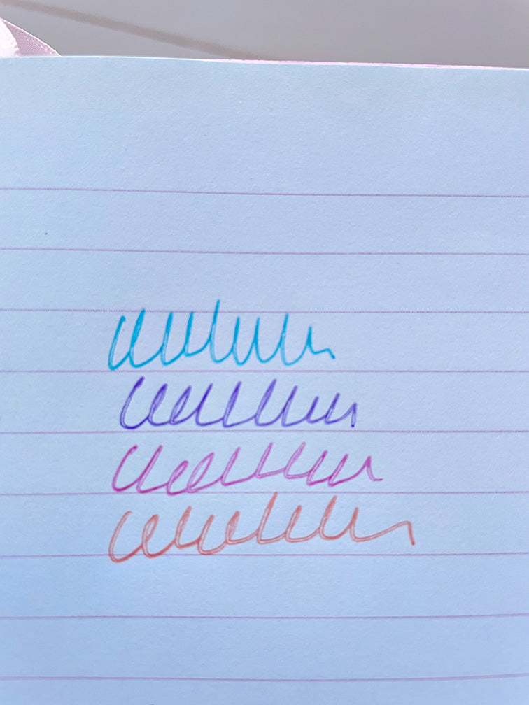 - Cajita con 4 Lapiceras Borrables de Colores (Violeta, Naranja, Rosa y Celeste).