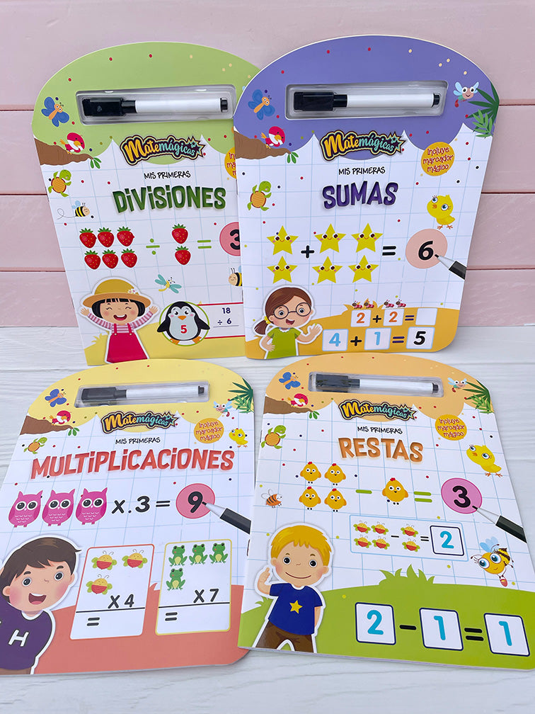 - Libros para ejercitar las primeras divisiones, mutiplicaciones, sumas y restas de los niños.