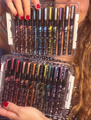 - Valijita con 24 Marcadores acrílicos punta pincel metalizados.