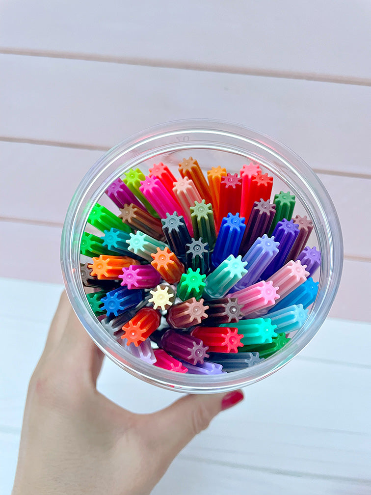 - 50 Marcadores finos escolares en tubo de plástico, ideal para mantenerlos siempre ordenados.