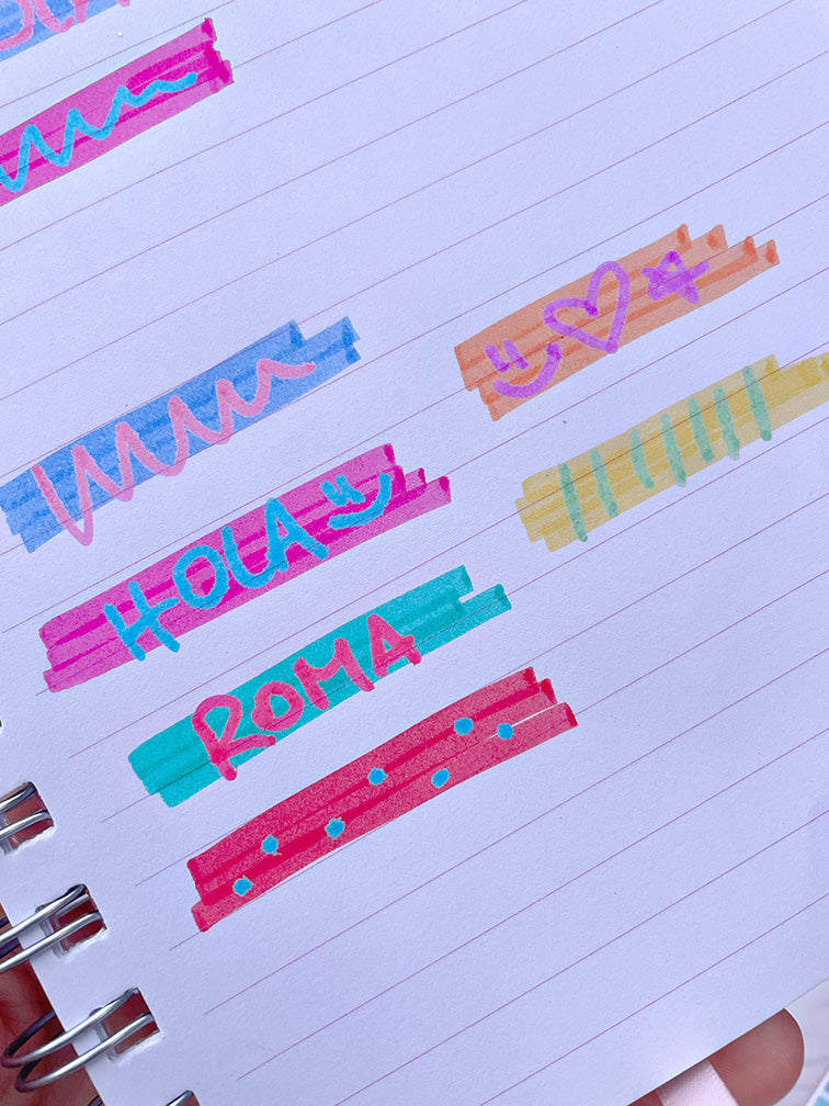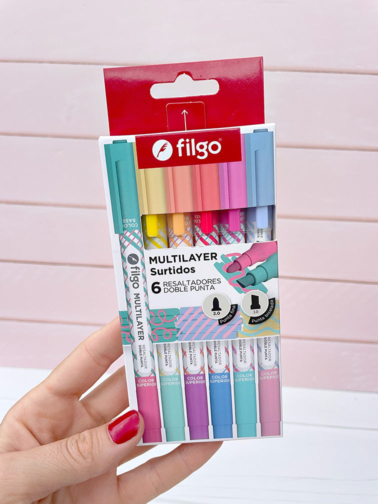 - Cajita con 6 Resaltadores doble punta de superposión.