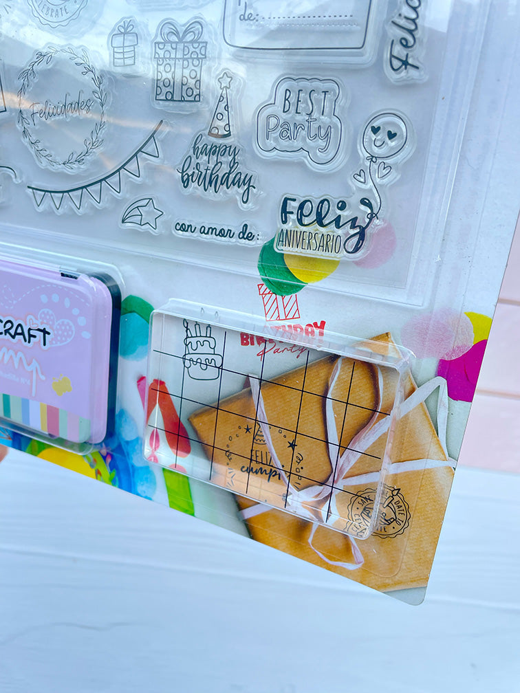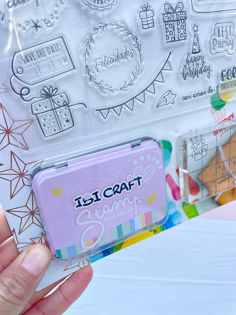 - Set de sellos de siliccona que incluye: 27 sellos + Almohadilla entintada + Base acrílica reticulada ideal para posicionar los sellos.
