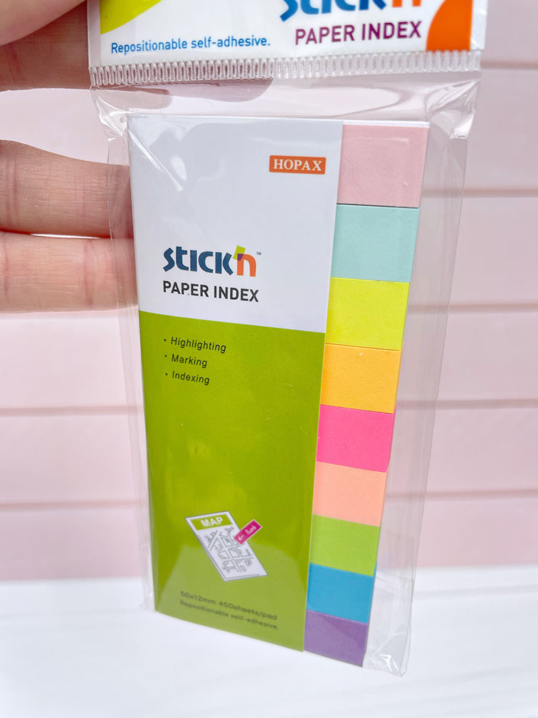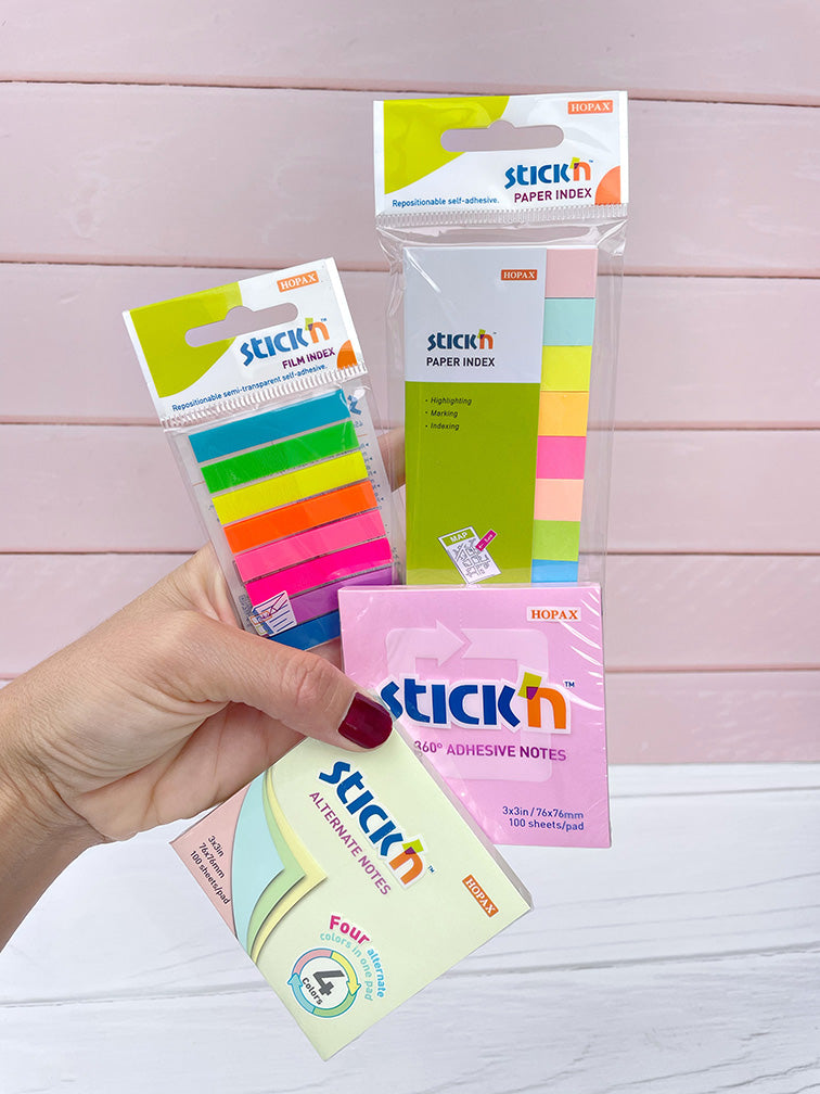 - Este set incluye: Post it pasteles + Post it rosados con pegamento 360 + Banderitas señaladoras de papel x9 colores + Banderitas señaladoras plásticas x8 colores.